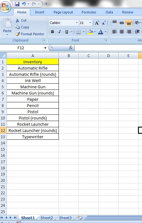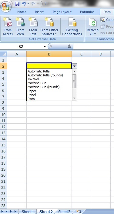 Here we have our data list. Notice that it exists on Sheet 1. We will now make a data validation list on Sheet 2.