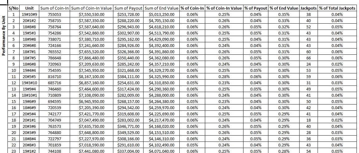 - Tells you what your Top performing Brands, Games, Denominations, Zones, Banks, Units and Players are based on a 6-measurement system!